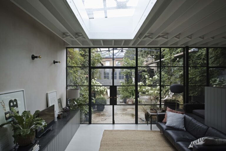 In keeping with the style of the French doors we also designed, manufactured and fitted bespoke steel windows throughout the property.